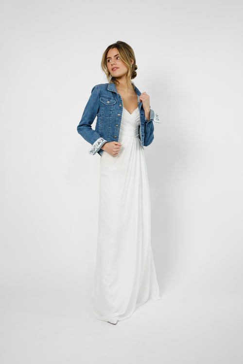 Brautjacke, Jeansjacke mit Spitze am Armbund / Farbe blau